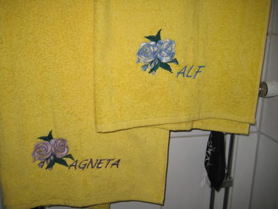 Jag har hunnit med att sy en väska till mig själv med en stygnsatt rosbukett av Lena Stenbeck och en kudde med min man och mig i unga år som Susanne Forsell stygnsatt. Tusen tack för det.