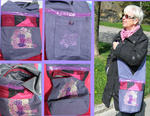 Jackan är gjort av samma mönster som min väst så där kan man se vad olika resultat det kan bli av samma mönster. När jag sytt min väst fick jag för mig att jag skulle vara med på sysidans sommartävling och sydde ett par "shorts" och en kasse till. Kassen gjorde jag i en enkel modell för det skulle gå snabbt att göra den, men den har jag använt mycket redan när jag går och handlar. Det är bra plats för paraplyet i fickorna och det behövs denna sommar.