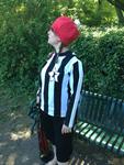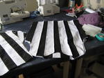 Jag fick en önskan från äldsta dottern om jag kunde hjälpa henne med en domartröja till deras våravslutning på dansskolan. Hitta tyg som var rätt randning gick inte utan jag rev lakan i remsor och sydde ihop. Sedan sydde jag en domartröja av det med rätt loga på också. Min dotter kunde vara domare på brännbollen i år också men med riktiga domarkläder på sig.