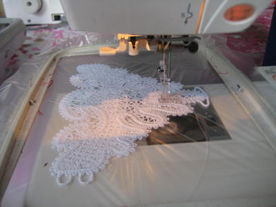 Här nålas det och sys med tungan rätt i mun. Den ska vara nästan klar till "Uppcon" i Uppsala den 15-17 juni och helt klar till "Närcon" i slutet på juni.