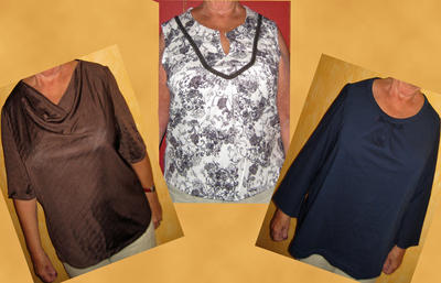 Den bruna och den blå skulle bara läggas upp i ärmar och nertill och halsen på den blå justeras lite. Den vit-bruna hade jag bara lite småbitar av och sydde upp en liten top som jag blev riktigt nöjd med.