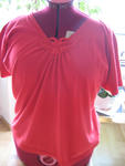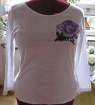 Jag har fixat och ändrat några t-shirt som bara ligger den med lila blomma har jag bara ändrat längden på ärmar och nertill samt broderat en blomma som Susanne Forsell stygnsatt. Den vita t-shirt har jag flyttat upp ärmarna och minskat axlarna samt ringat ur i halsen och lagt lite veck där, funderar på hur vad jag ska göra mer i halsen. På den röda ringade jag också ur i halsen och rynkade, där har jag broderat en spets och satt dit.