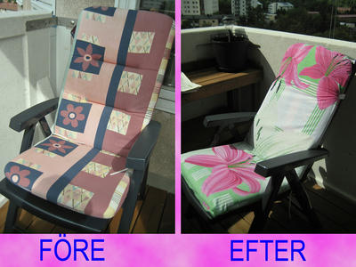 Vår balkong har renoverats sedan i maj och nu har vi fått tillgång till den och då var det dags att klä om de gamla dynorna. Jag har använt en textilvaxduk från ÖB.